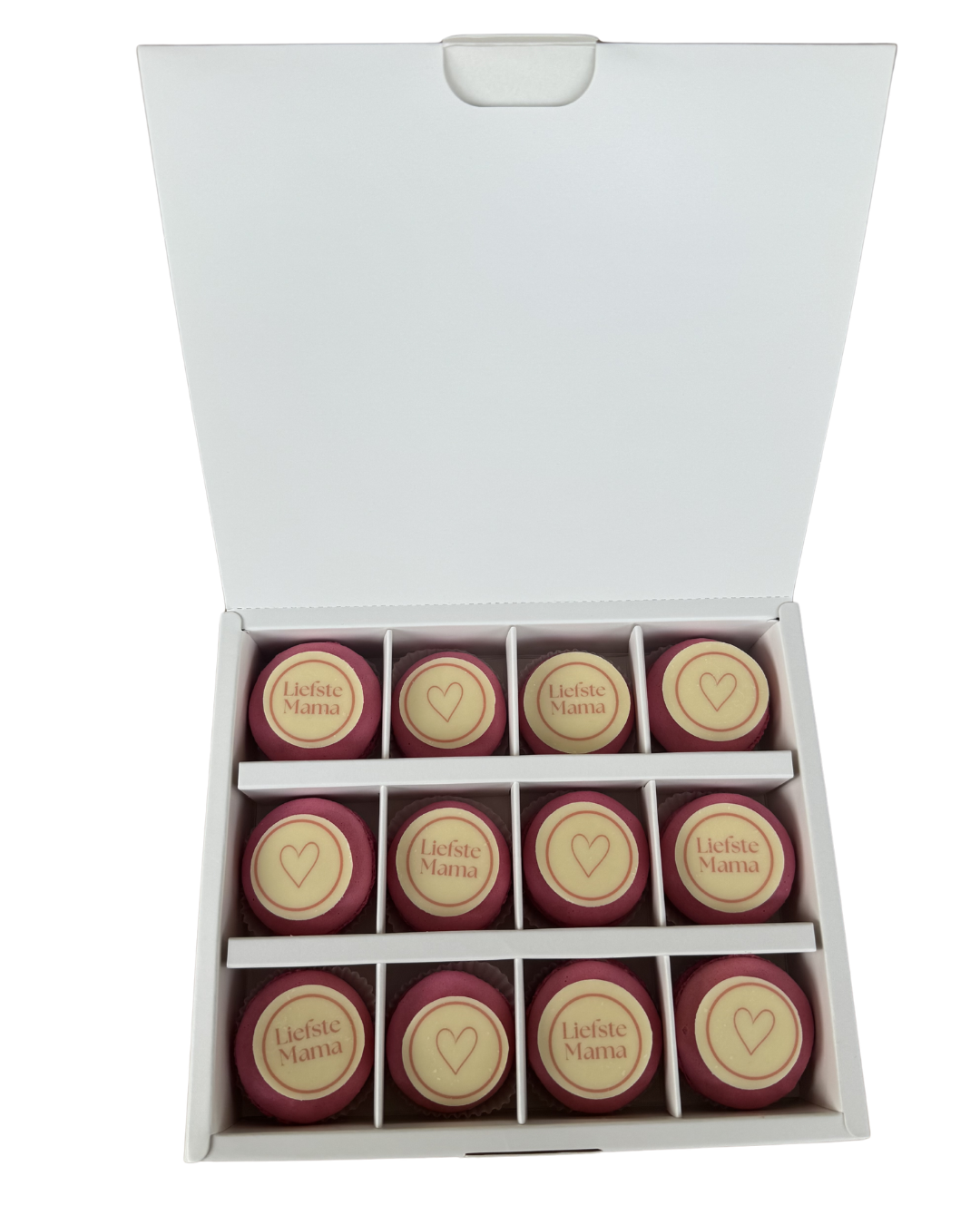 Geef haar een stijlvolle box met 12 handgemaakte macarons in zachte roze tinten. Een elegant en liefdevol Moederdagcadeau om haar extra in het zonnetje te zetten.